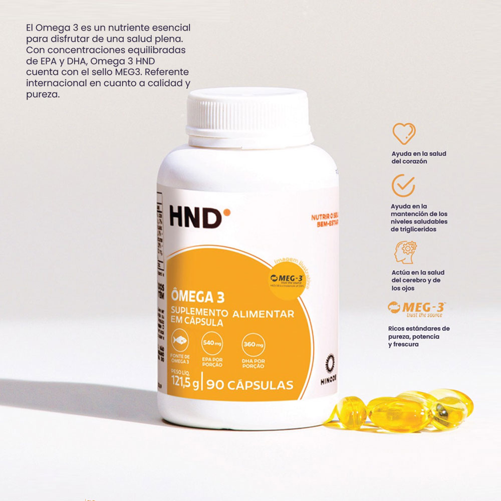 El Omega 3 es un tipo de ácido graso poliinsaturado que el cuerpo no puede producir por sí mismo, por lo que debe obtenerse a través de la dieta1 o suplementos. El complemento de Hinode te ofrece una forma práctica y eficaz de asegurar su consumo: